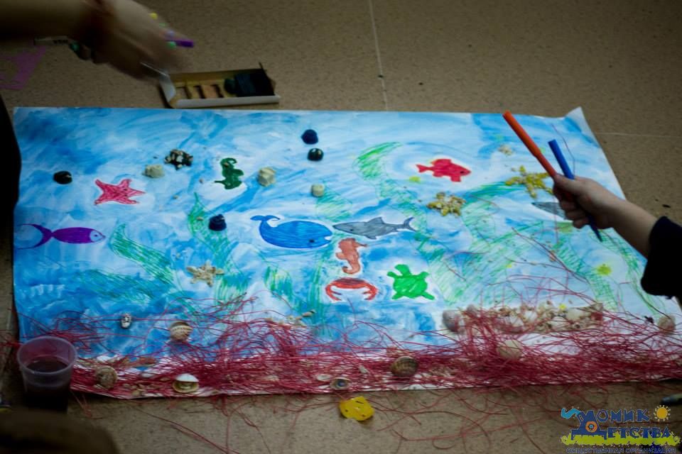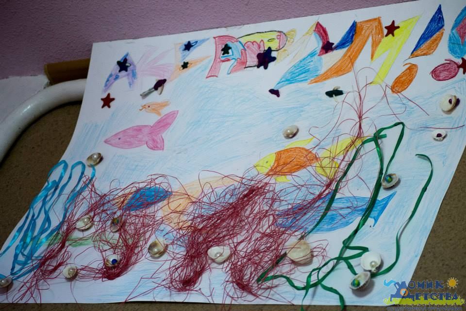 Дети очень старались, помогая Лене, а взрослые только со стороны наблюдали да старались забраться повыше, чтоб схватить самые удачные кадры ответственного момента В общем, получилось классно! Все рыбы обрели свои дом, а ребята из "Радонежа" обрели большую и красивую радость - целый мир, к жизни которого они теперь имеют самое прямое отношение. И чтоб еще раз напомнить себе об этом ребята создали еще парочку собственных аквариумов - на этот раз из листов ватмана, ленточек, ракушек, с помощью красок, карандашей и фломастеров