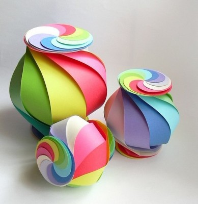 Бумаги понадобится листов 40 разного цвета, например, 5 красного, 5 желтого и т.д. Мы ее разрежем на полоски и дадим ребятам. Я сделаю заготовки из картона, ребята обведут карандашами картонный образец и будут вырезать, каждому ребенку понадобится вырезать 10 кривулек)) Кривульки складываются в игрушку) Вот! Получается, карандаши еще нужны, их я тоже привезу.
